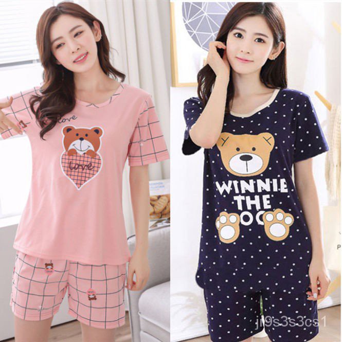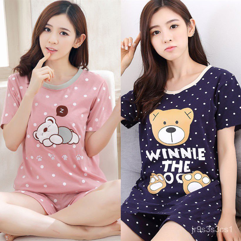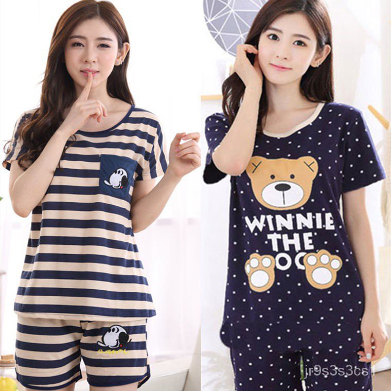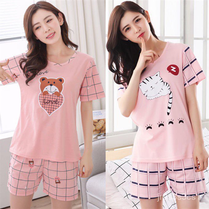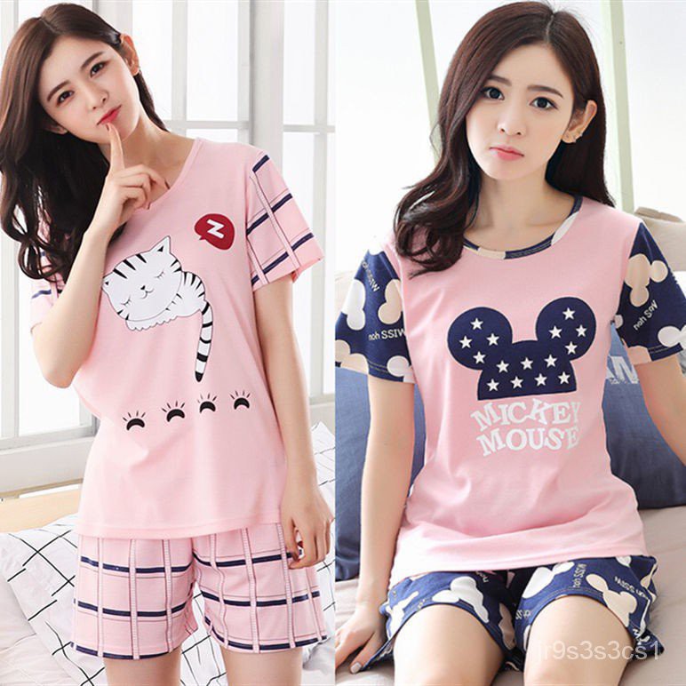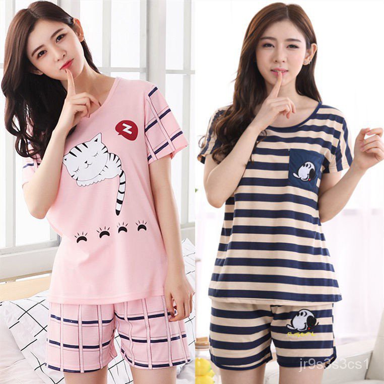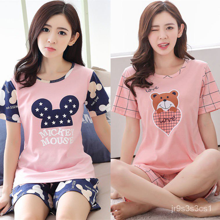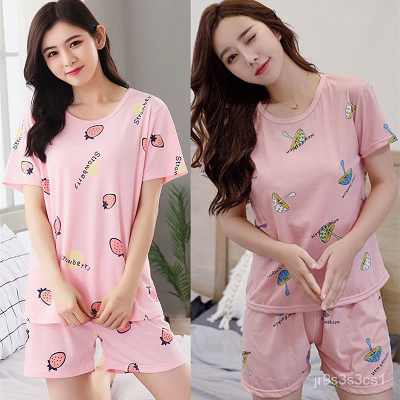 Pajamas women's suit short-sleeved shorts two-piece ladies day pajamas home serv睡衣女套装短袖短裤两件套女士天睡衣家居服春秋可外穿Fabric commonly known as: other
