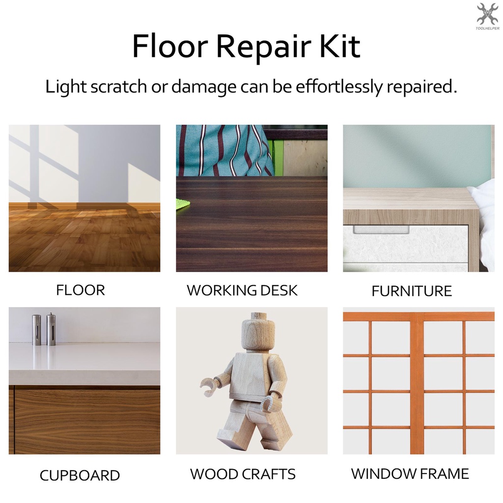 Complete kit: This floor repairing kit contains everything you can use, including 11 different wax blocks, 2 scrapers, a hot melt wax application tool, 2 sponge and a cleaning cloth.