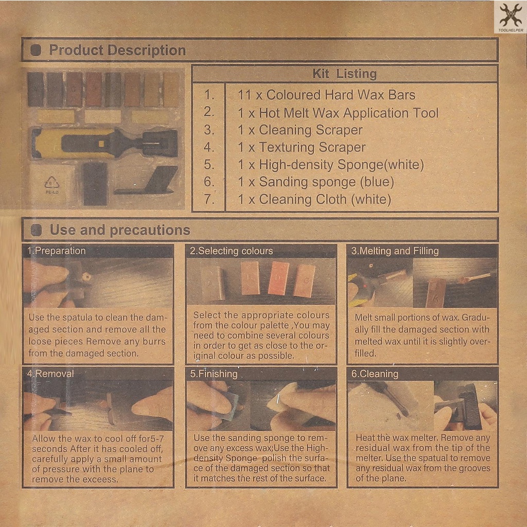 Easy to use: Simply recreate the color of your damaged boards by mixing the 11 wax blocks and use it with thw hot melt wax application tool, you can refer to the procedure on the box to use it.