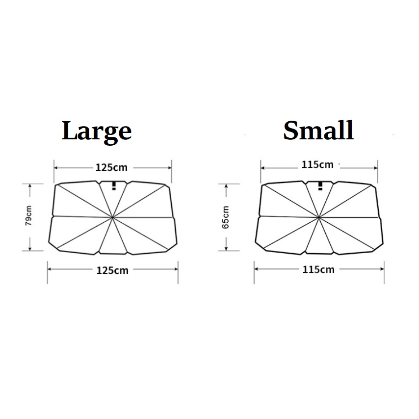 【Universal Size】: Car Windshield SunShade Umbrella Size is 54"&57" X 31",compatible for standard cars, Sedans, Mid-Size SUVs and Truck and Mini vans. NOTE : Suitable for most vehicles, please confirm your car windshield size suitable before buying.
