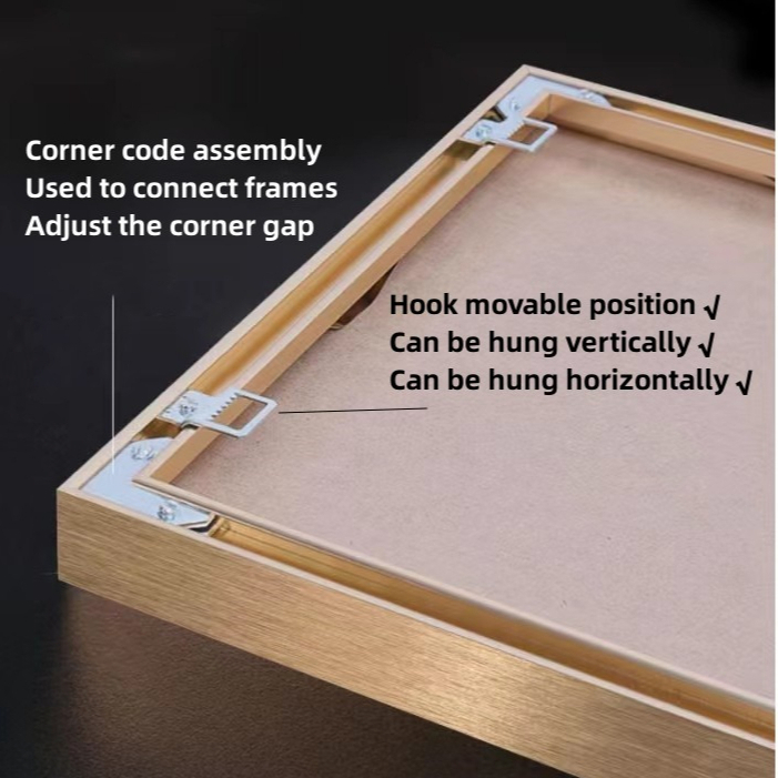 1. Aluminum Alloy Material, Simple and Fashionable. The Width of The Frame Surface is 5 mm and The Width of The Frame Edge is 25 mm. It Can be Paired with Artwork with a Maximum Thickness of Less Than 5mm,