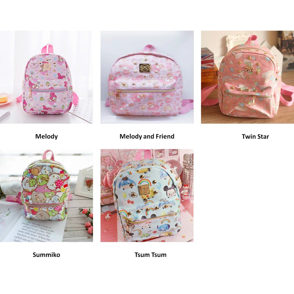 ❤ Tsum Tsum Melody Cartoon Hello Kitty Kids PU Leather Backpack ❤ Bag Party Travel Outing Events Bag
