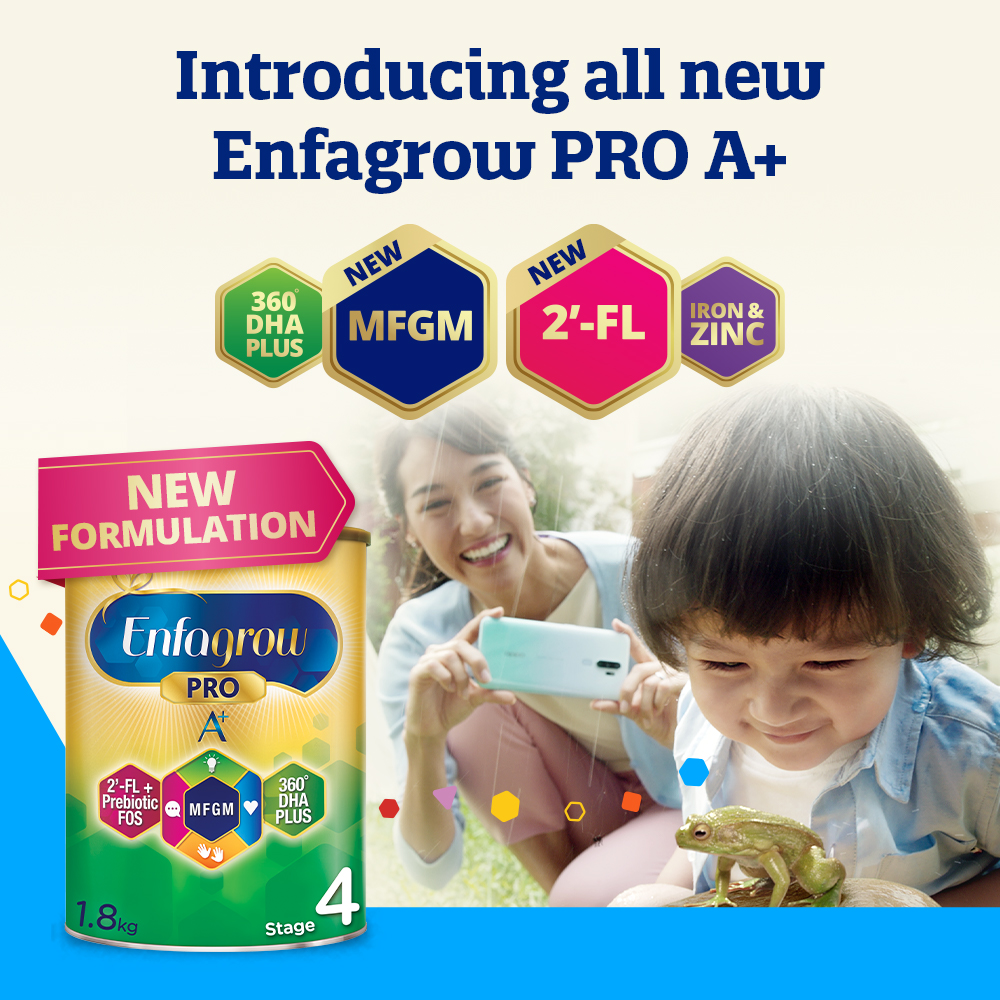 • With over 100 years of experience in pediatric nutrition, Mead Johnson Nutrition has scientifically formulated Enfagrow Pro A+ Stage 4 with a unique blend of nutrients that are important for overall mental and physical development.