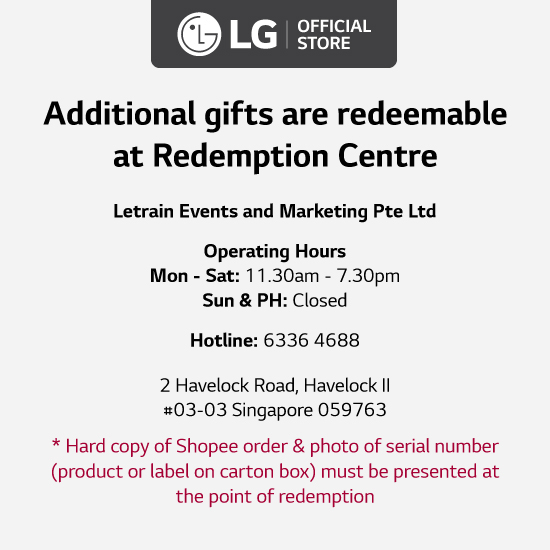 *Kindly note that LG reserves the right to reject any redemption of purchased product if the redemption has exceed the dateline for redeem.