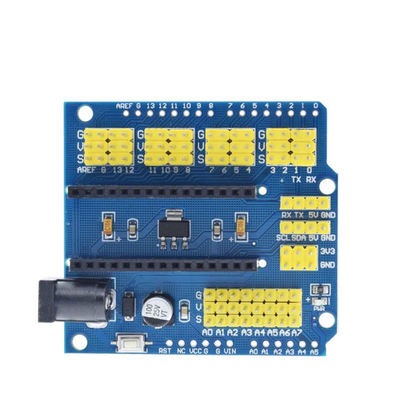 For Arduino Nano IO Expansion Shield is specifically designed to facilitate an easy connection between FOR Arduino Nano and many other devices. In essence, it expands the Nano controller to link those devices in a simple and trouble free manner. It is a perfect companion of Nano breadboard and compatible with both Nano v2.x and v3.x.