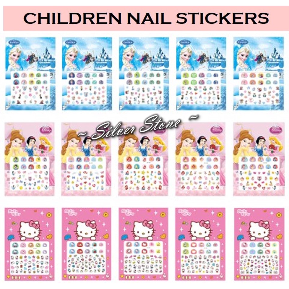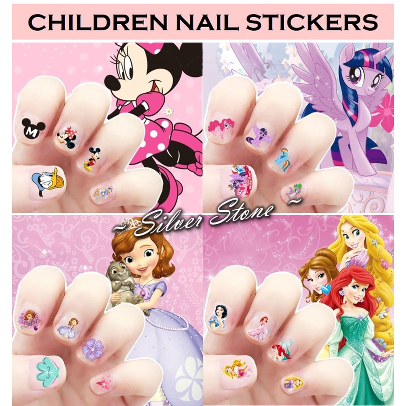 [SG READY STOCK] 5sheets Girls Waterproof Kids Nail Stickers Cute Children Birthday Gift Cartoon Puffy Reward Goodie Bag
