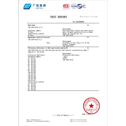 3) Bacterial Filtration Efficiency (BFE) ≥99%