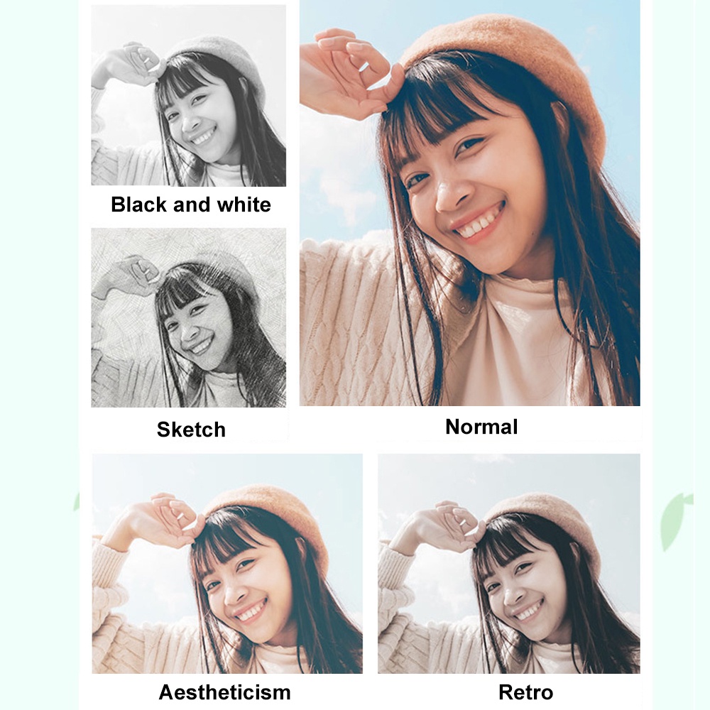 Product features: Photo, video, 4X zoom, photo album, photo stickers, multiple filters, volume adjustment, five games, MP3 function, multiple languages optional, can take pictures regularly, change the screen background, sketch function.