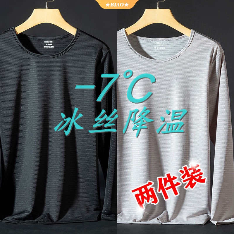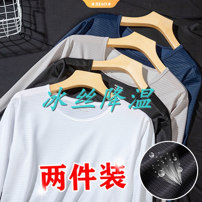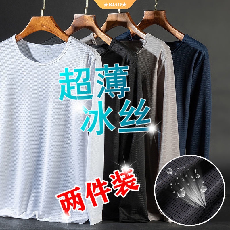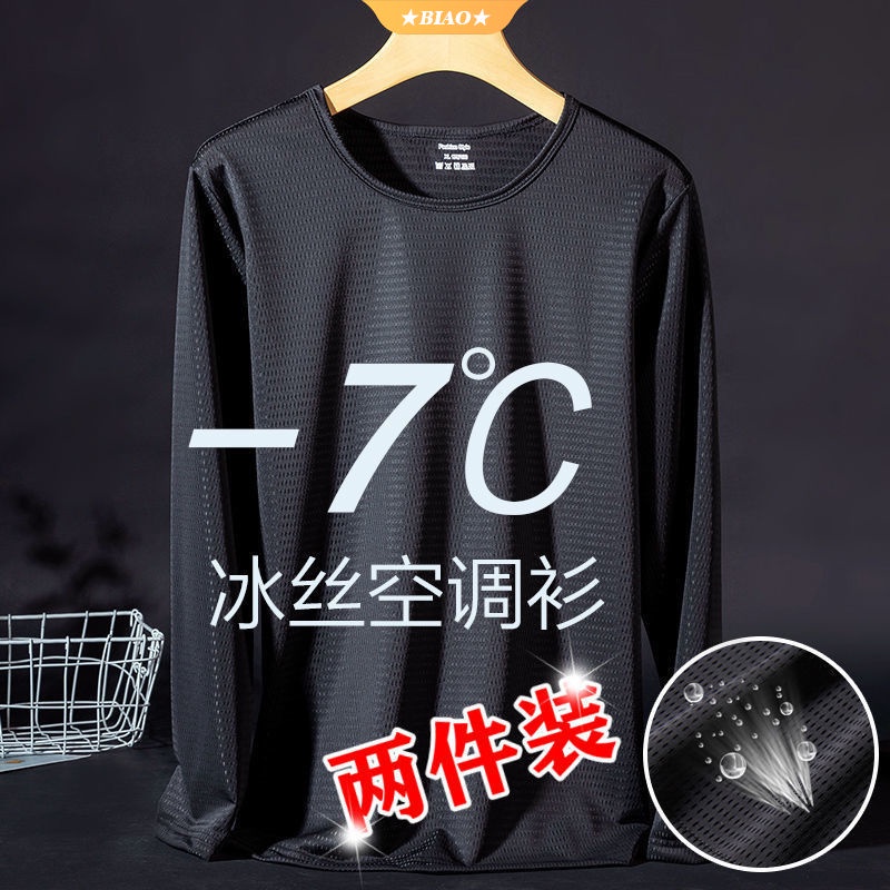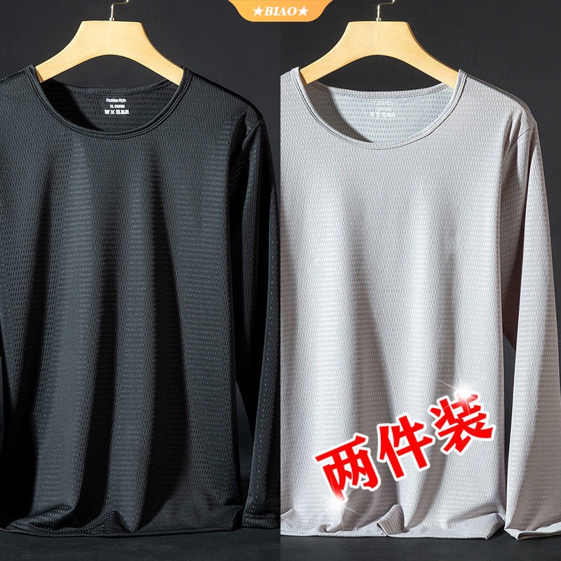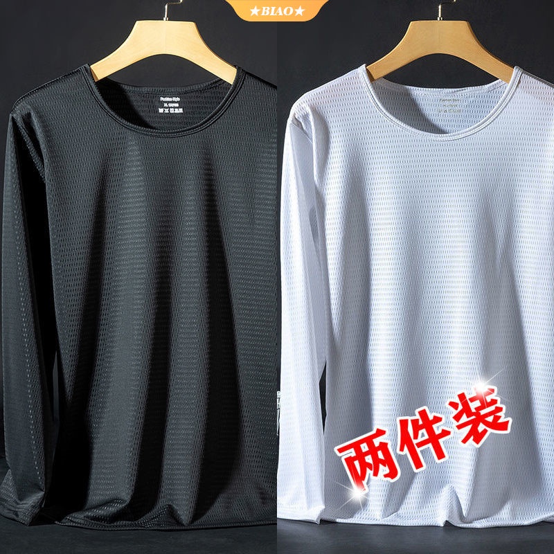 Long - sleeved T - shirt men's summer thin quick - drying air - conditioning clothing mesh breathable sunscreen hollow middle - aged and elderly bottoming shirt summer new men's fashion handsome all - match moisture
