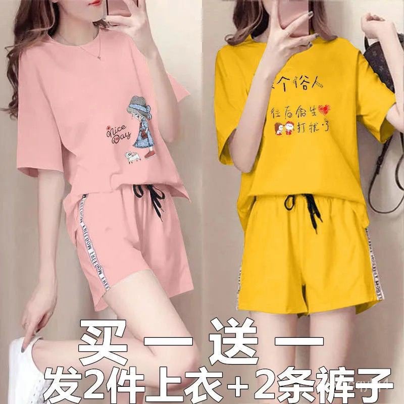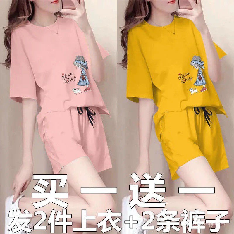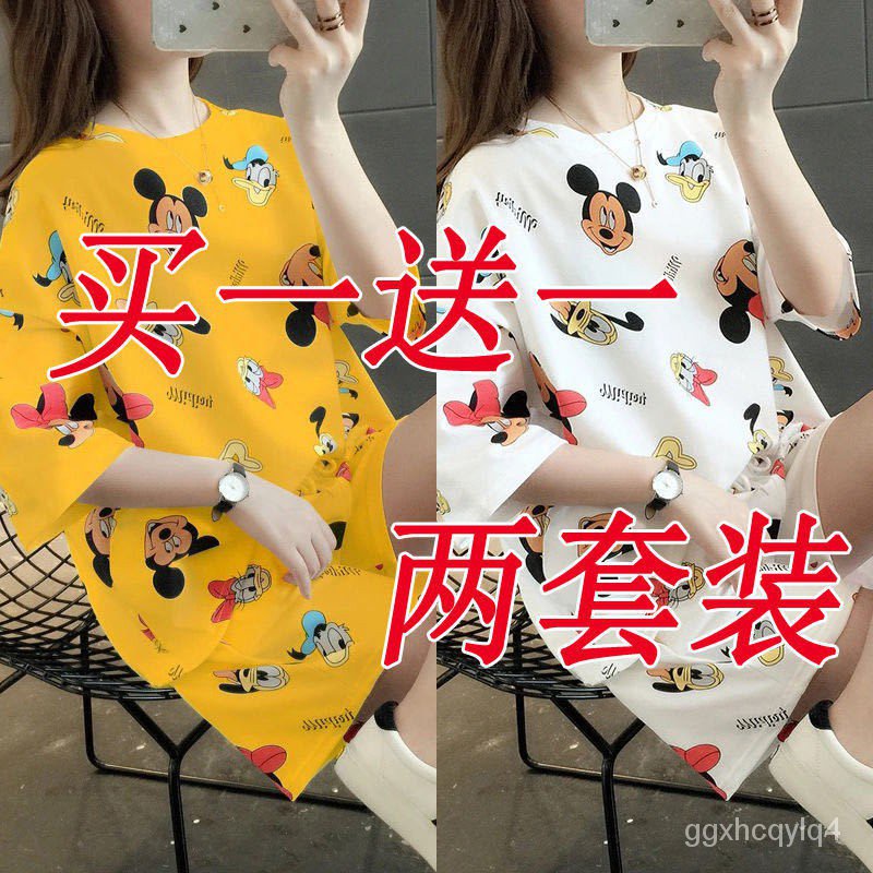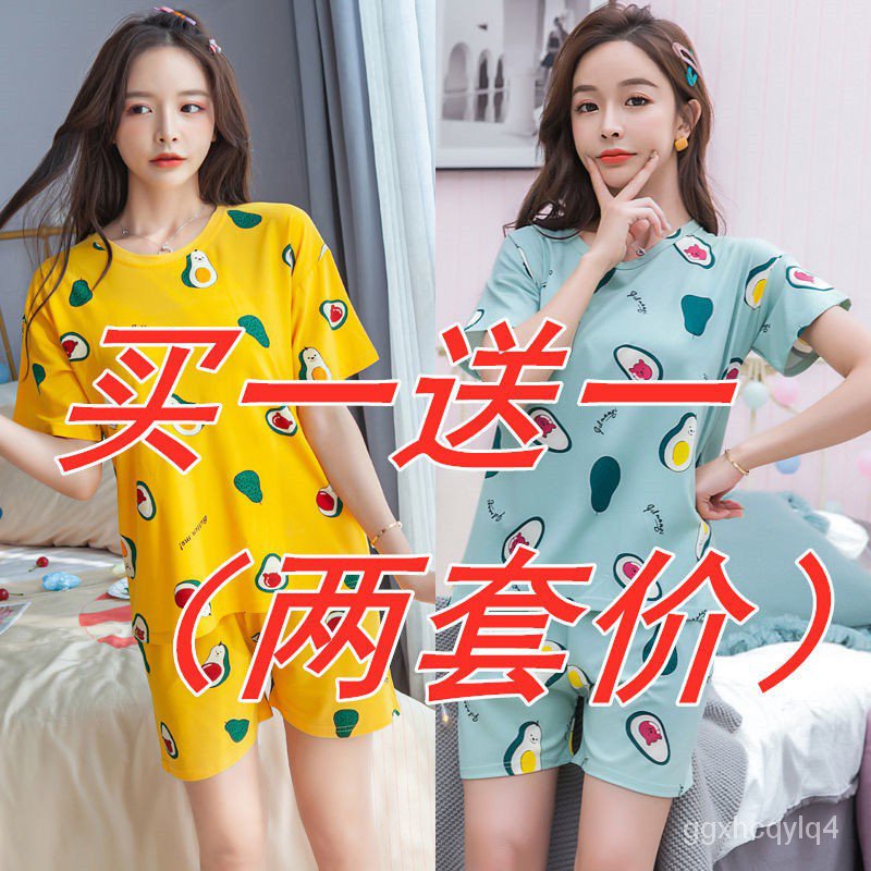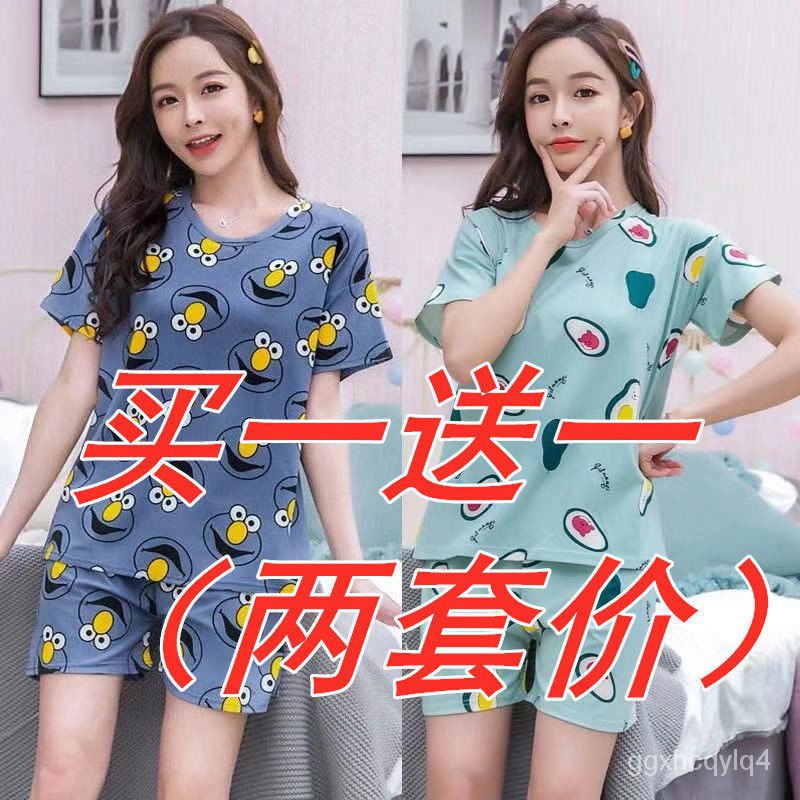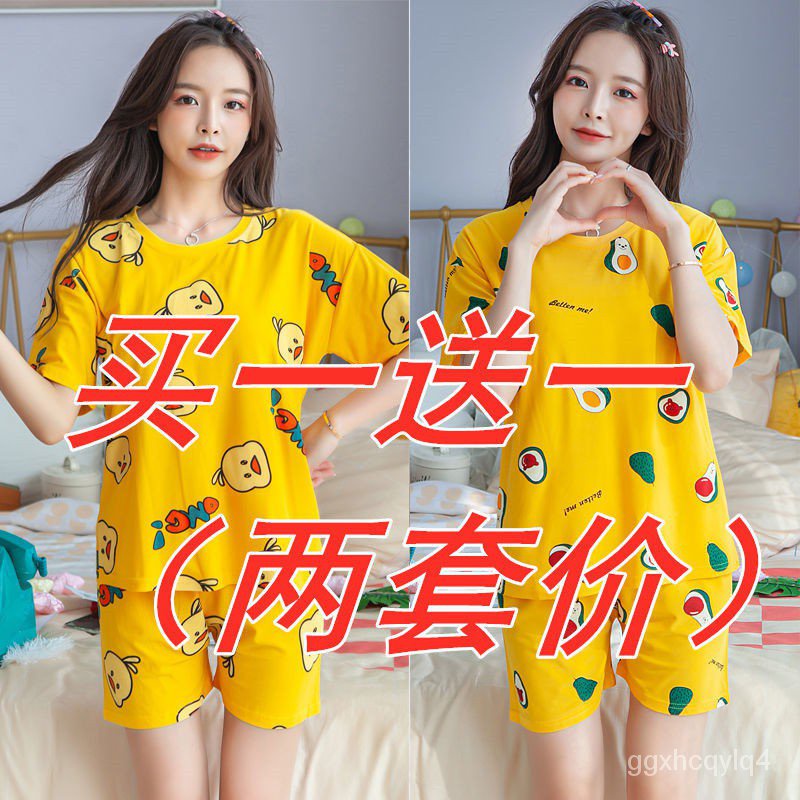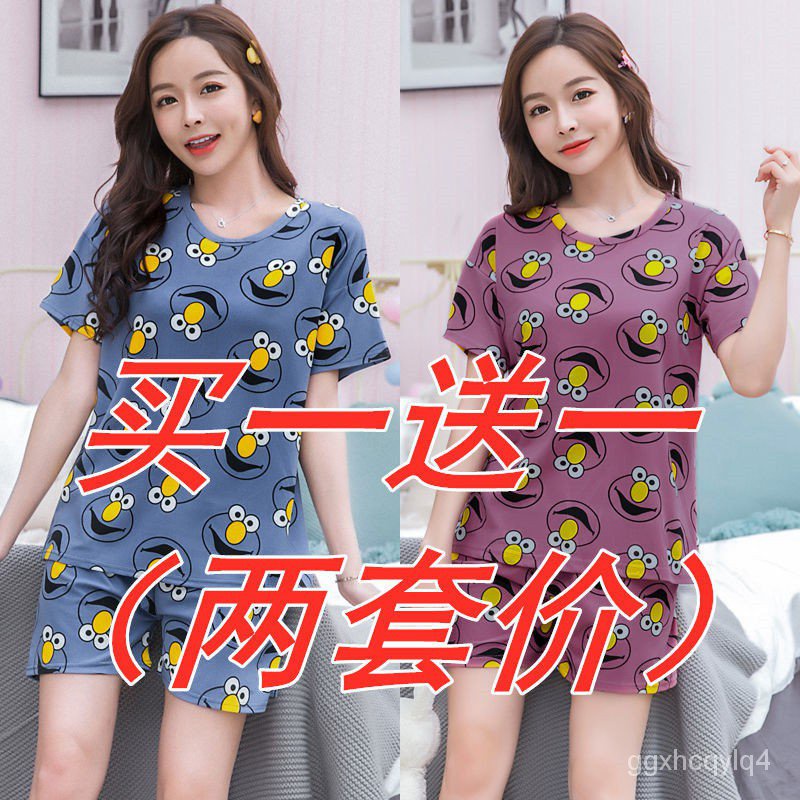Pajamas spring short-sleeved pajamas female Korean cartoon student casual home s睡衣春短袖睡衣女韩版卡通学生休闲家居服套装春Qin Yadan