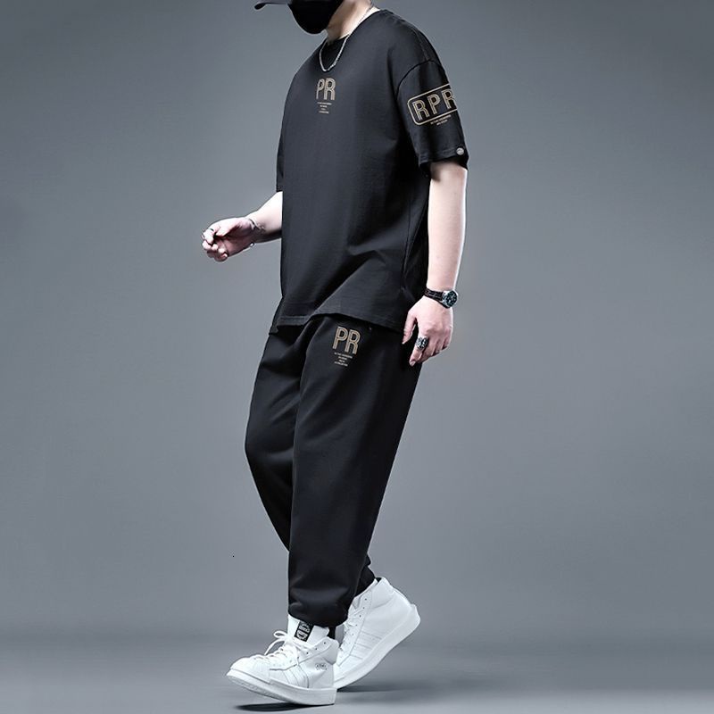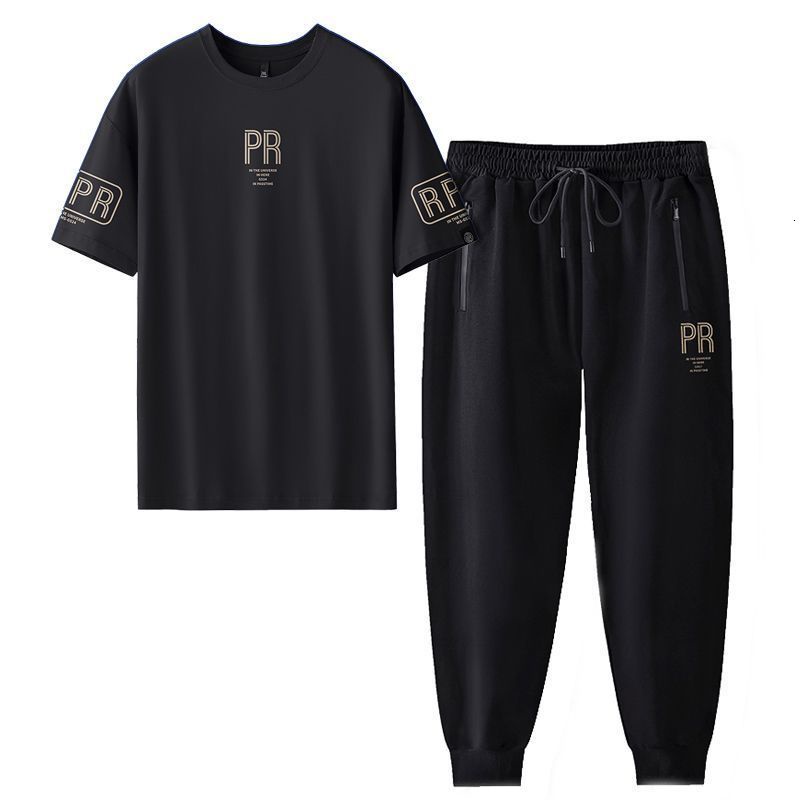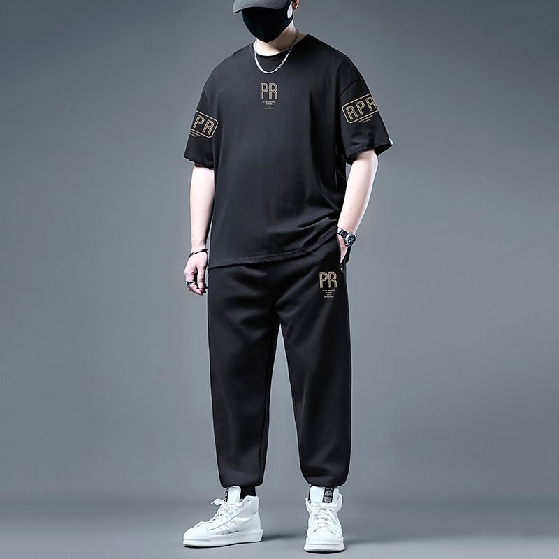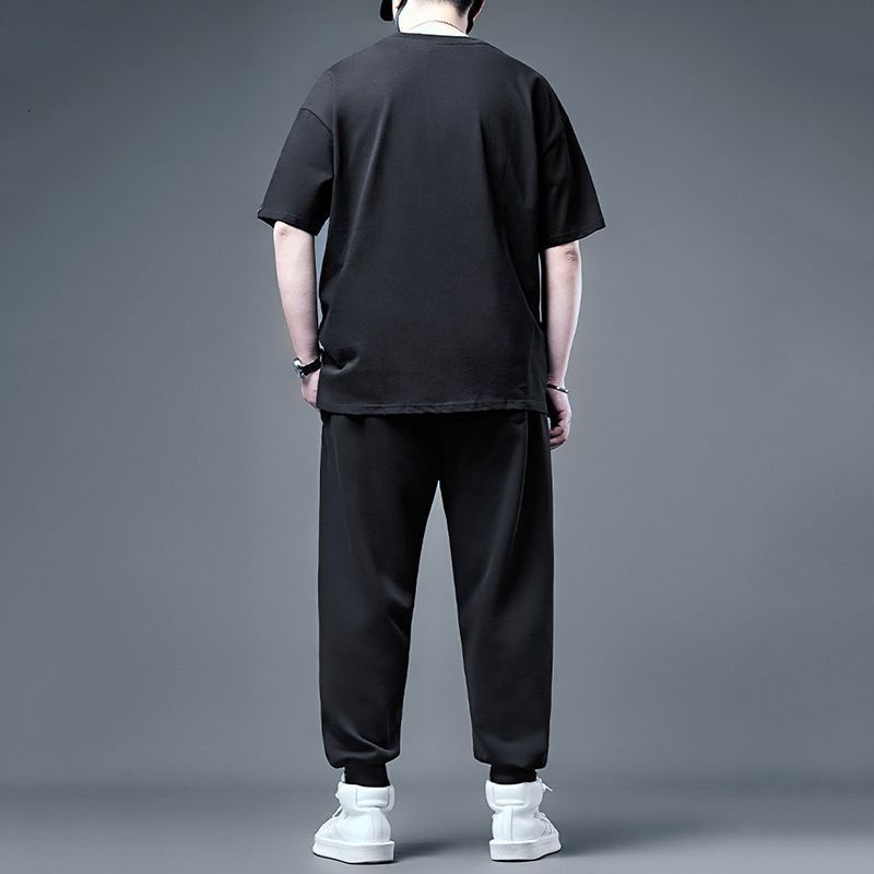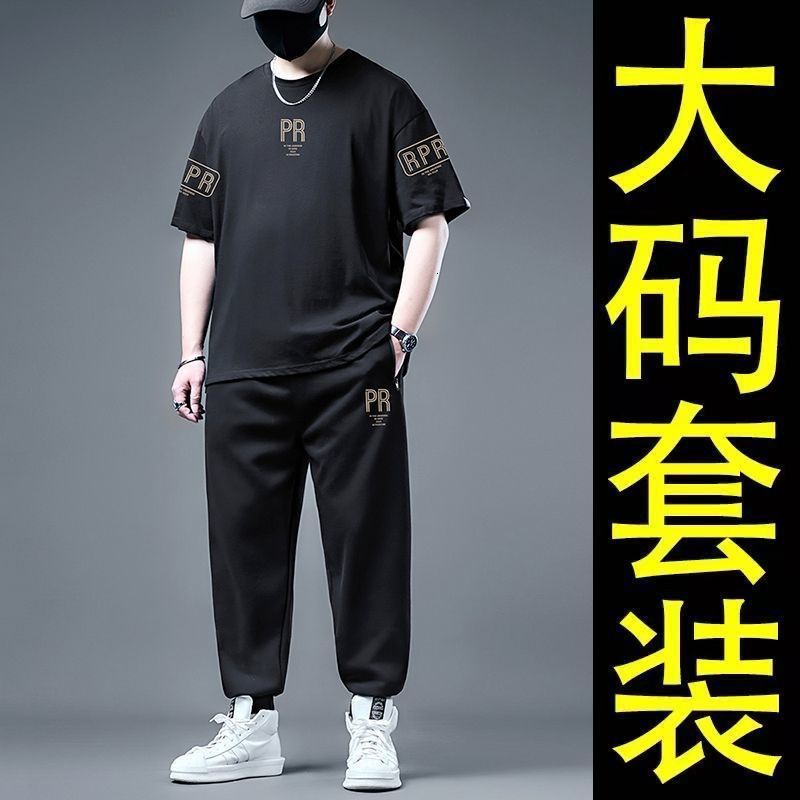 【 door-to-door return 】 Large size sports set for men in spring and summer, newly added fat, enlarged short sleeved pants for men, loose fitting and slimming casual men's clothing