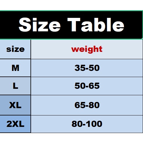 Weight: M - XXL (35-100Kg)