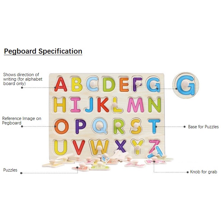 -Dimension: 30 * 22.5 * 1 cm (Package contains Wooden Pegboard & Puzzles)