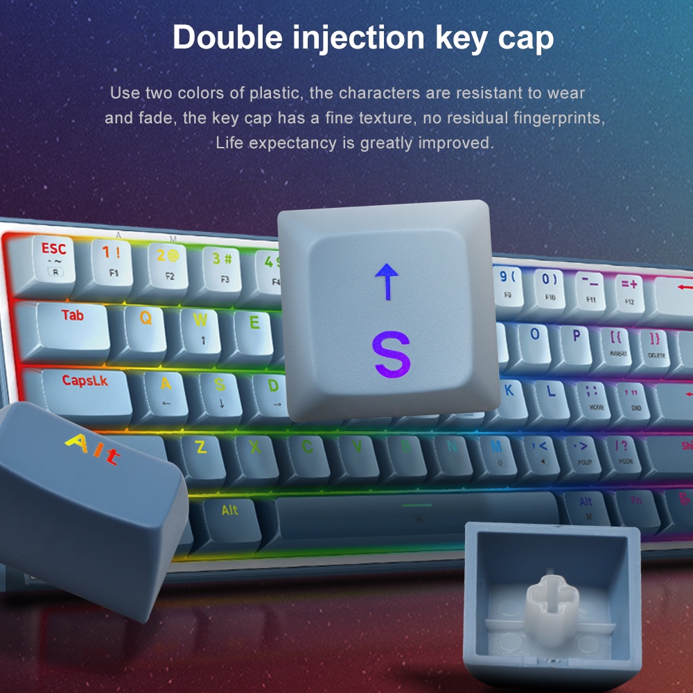 layout wired keyboard in a refreshing style with a no-brainer deal economic offer.     Compact 61 keys with selected keycaps, dedicated for FPS Gamers and efficient working.