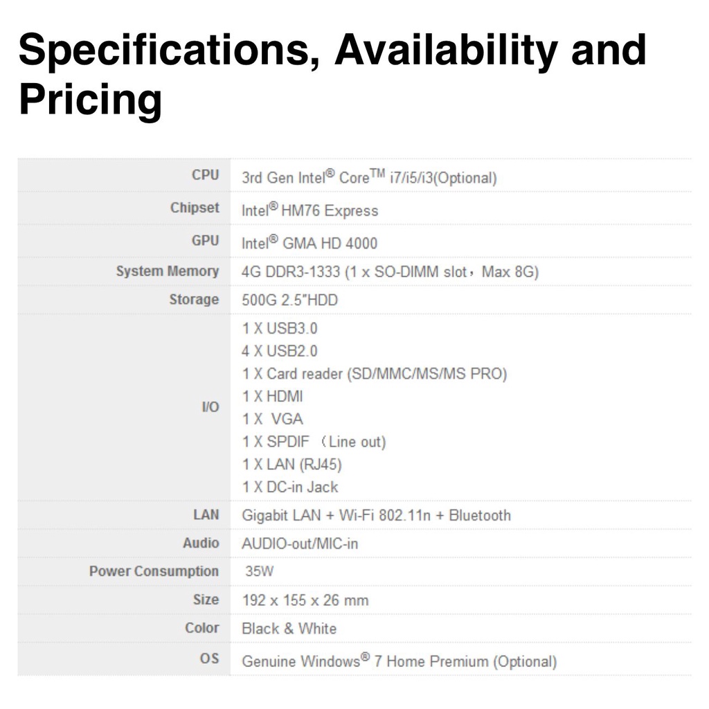 4G DDR3-1333 (1 x SO-DIMM Slot, Max 8G)