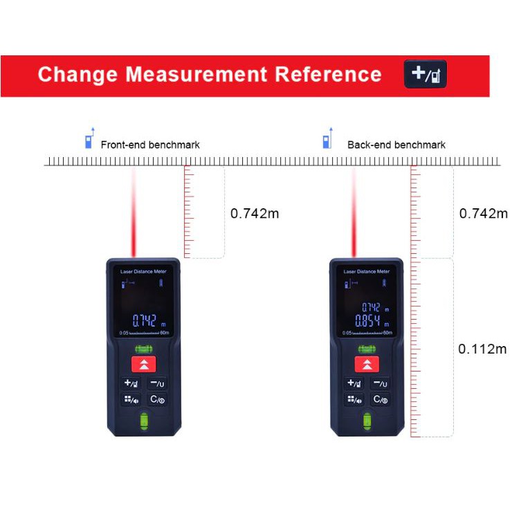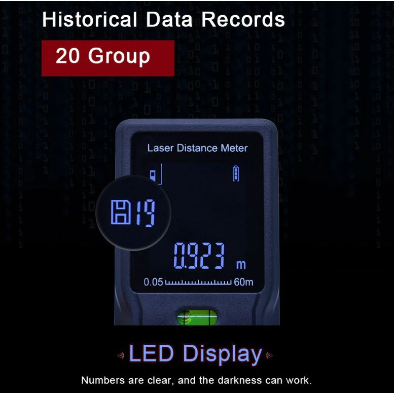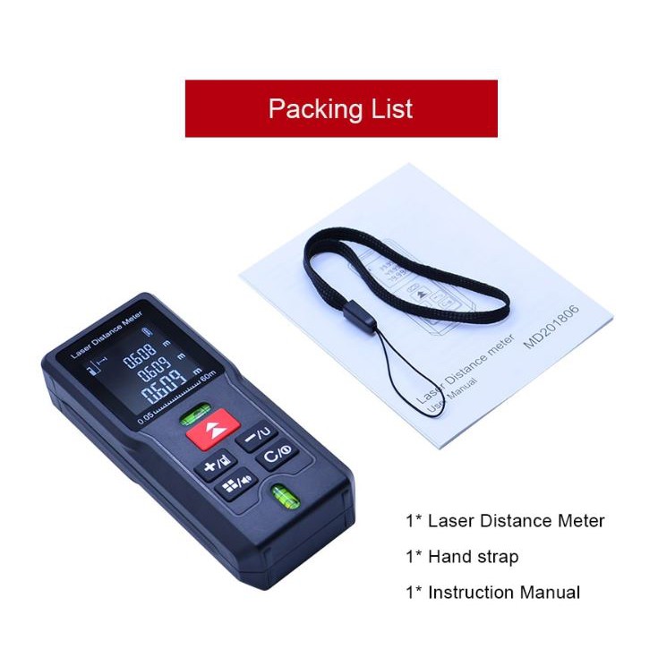 Various Settings: 20 groups data memory, 3 measurement units: m/in/ft, buzzer indicator, addition and subtraction, automatic shutdown without operation 180s.