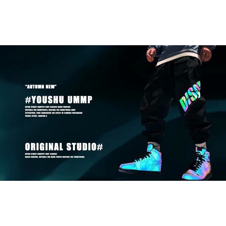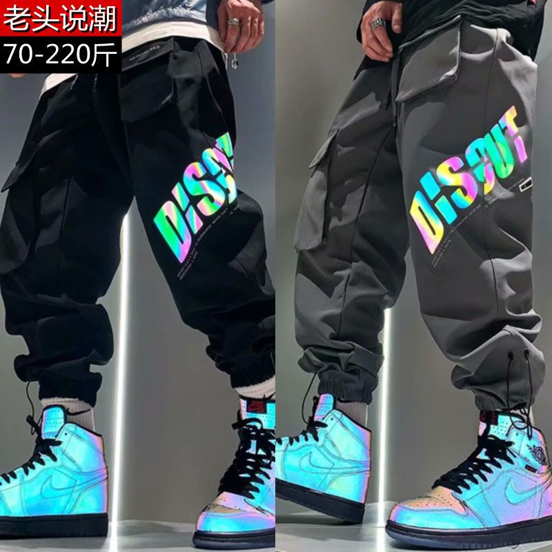 Big yards popular contracted wind overalls fat man loose men's fashion leis大码潮牌简约工装裤胖子港风宽松休闲裤子男装时尚口袋九分裤