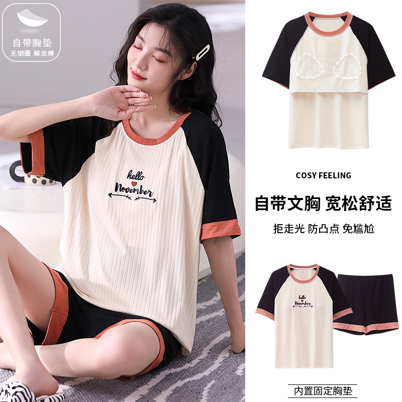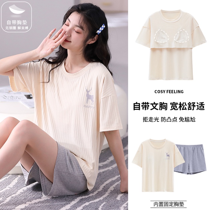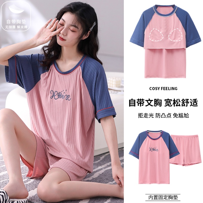 Sleepwear Pyjamas Women Chest Pad Model Pajamas Set Summer Popular Short Sleeve Lady Home Wear Nightwear