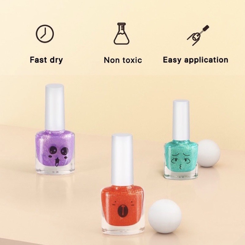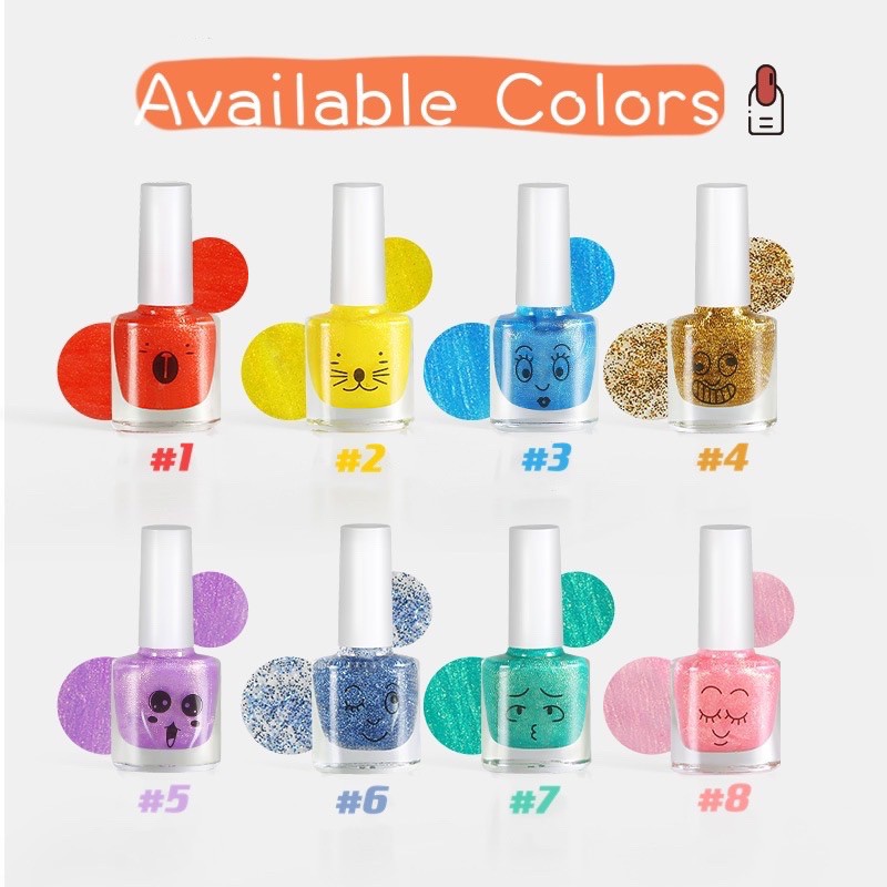 Make every day mani day with nail polishes in 8 trendy colors that any mini fashion maven will love! This water-based, non-toxic nail polish for kids is easy to apply and comes off easily by wash hand, so your little one can switch it up mess free! With 8 colors to choose from, she can wear a different nail polish every day of the week! Whether she wants her nails to shine and glitter or be bright and bold, the Rainbow Bright Nail Polish Days of the Week has the polish for her!