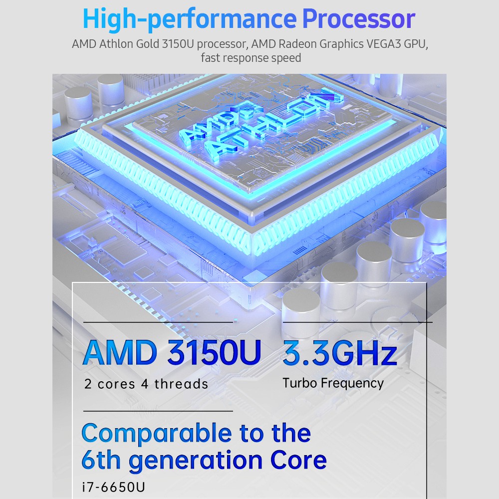 High-performance AMD Athlon Gold 3150U processor, AMD Radeon Graphics VEGA3 GPU, fast response speed.