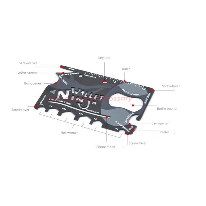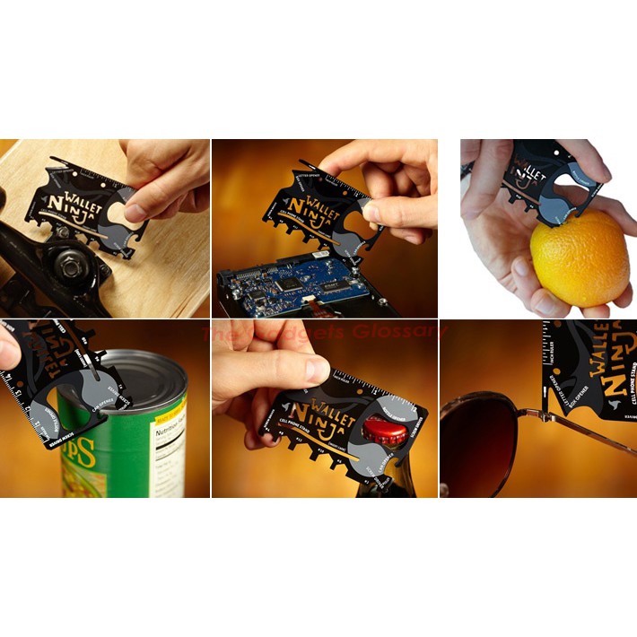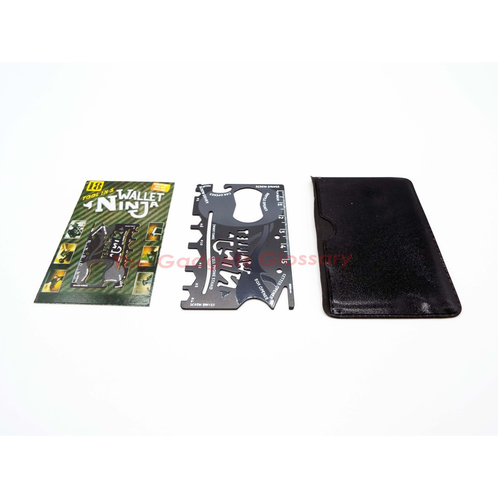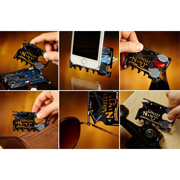 The credit-card-sized, black and grey steel multi-tool hides in your wallet, but when it's needed it will suddenly be revealed, and can perform one of its 18 useful functions: whether that be opening a bottle or can, slicing open a box, or functioning as a screwdriver, hex wrench, or ruler.