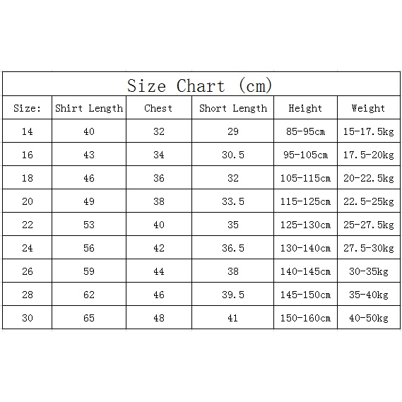Size---Shirt------Chest-----Short---------Height(cm)----------Weight