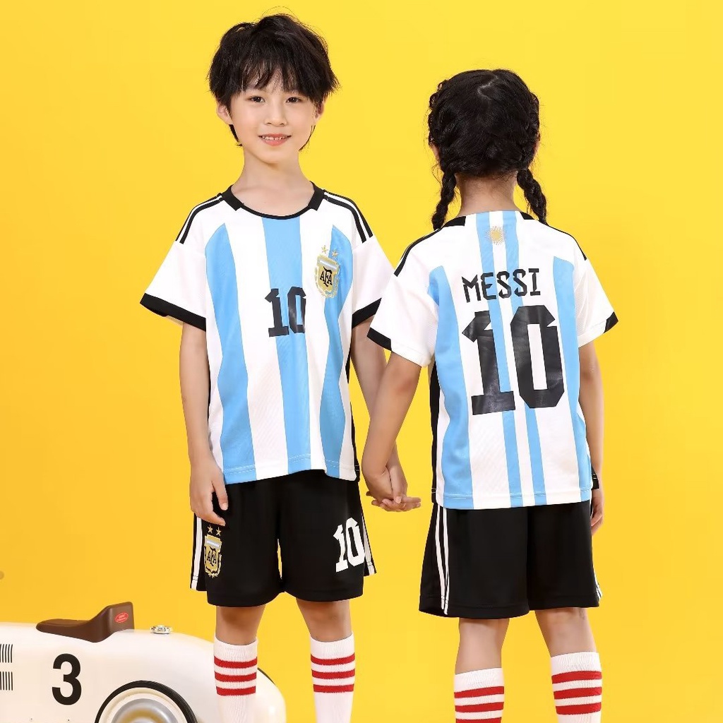 Package Included: 1 set Kid's Soccer Jersey (jersey + shorts, without socks/shoes/balls)