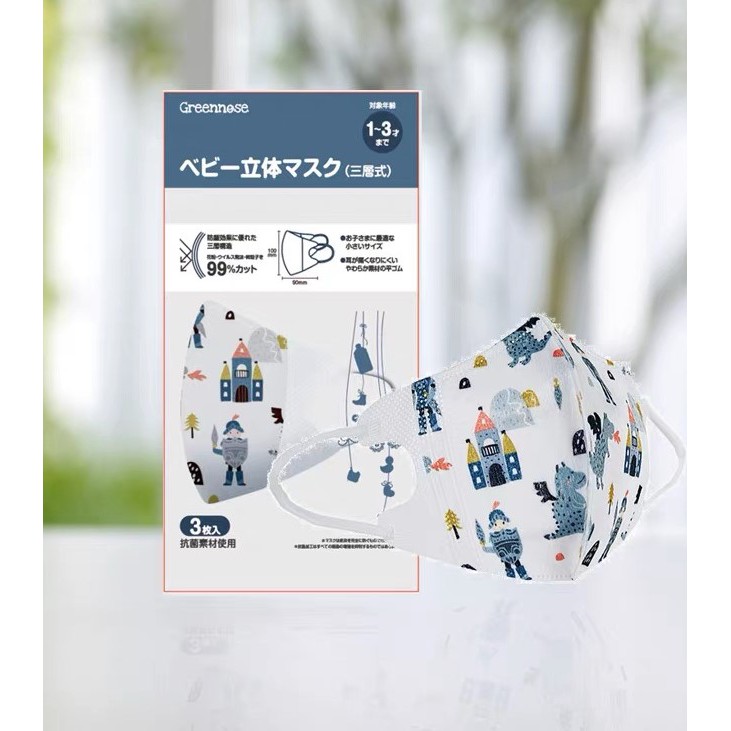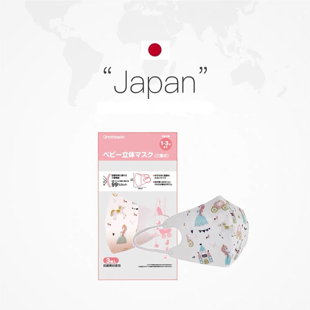 Kids/Children/Toddler 3D disposable mask 3 ply - Greennose Japan/Skater Japan (5 pcs in a packet) / GreenAir Thailand (6 pcs in a set)