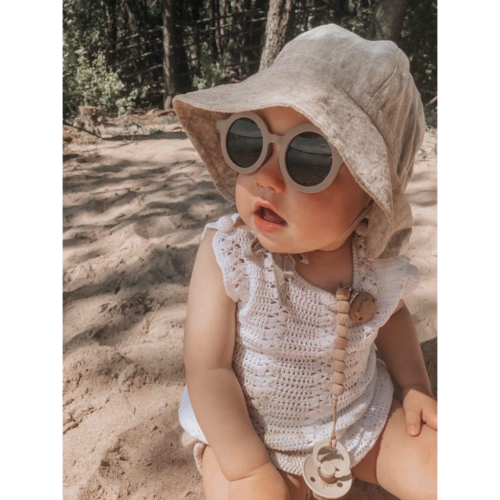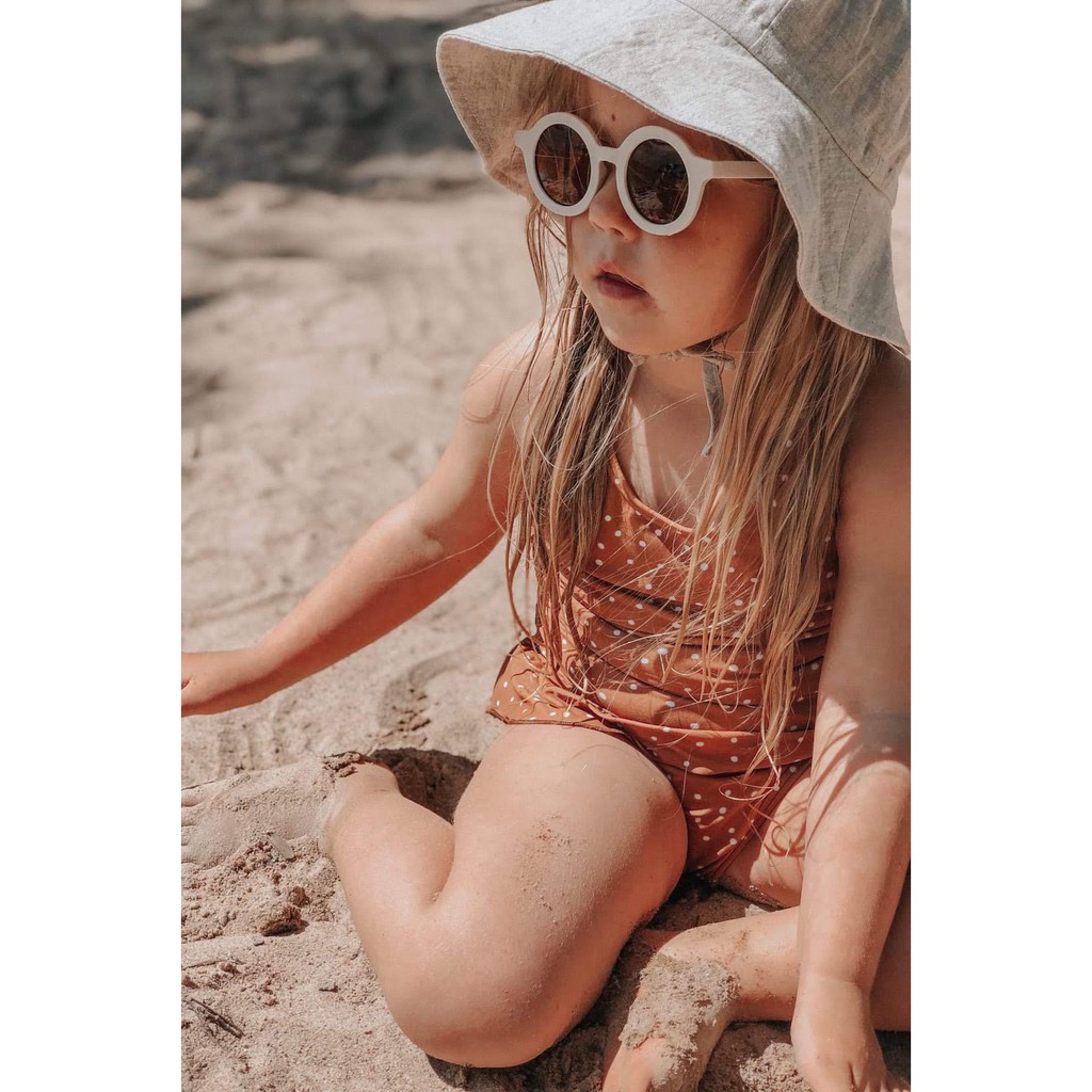 These gorgeous sustainable sunglasses have a timeless aesthetic and come in exclusive colours. Made from recycled plastic and featuring UV 400 protection, these sunglasses can be worn by your child through their growing up years. Includes a protection bag.