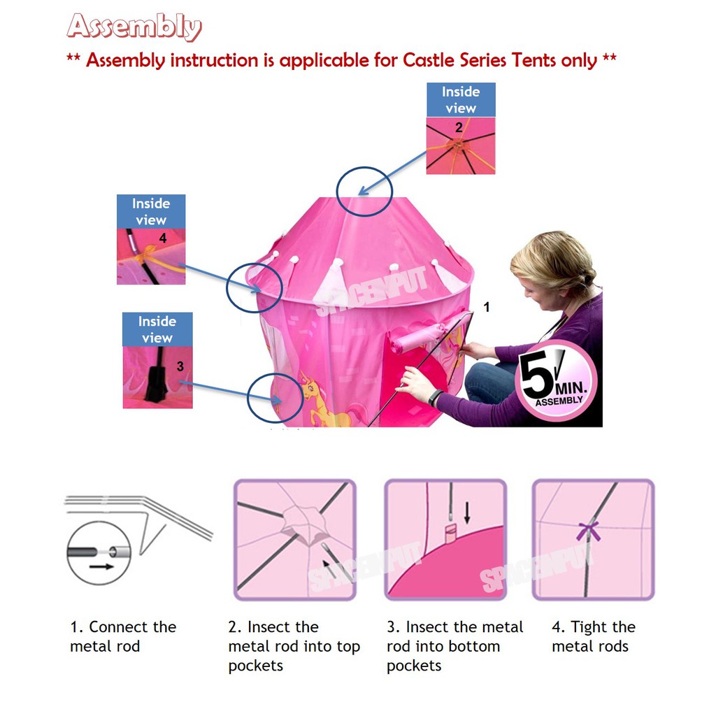 These Play tents are pop-up tents. Minimum installation required for castle tents.