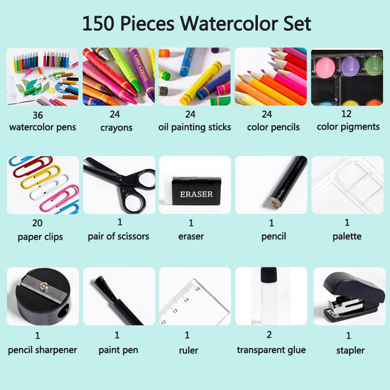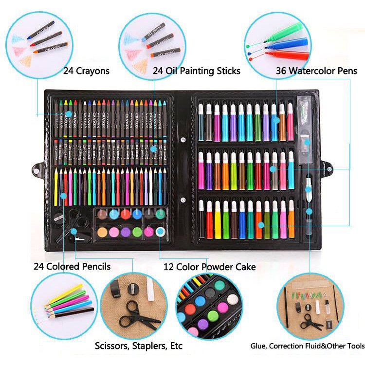 This premium art set includes a wide variety of art supplies for drawing, painting and more
