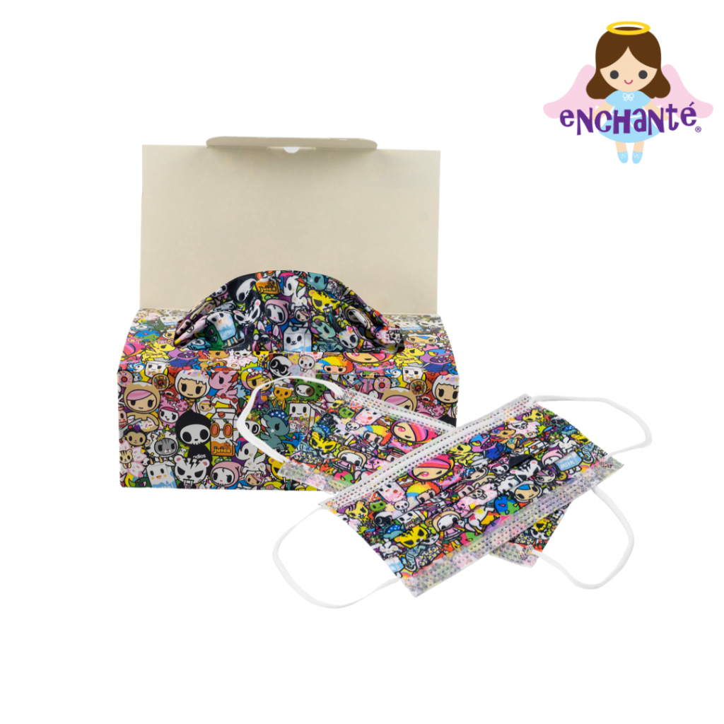 *The box is designed with the intention to recycle for use as a facial tissue holder. We do not recommend dispensing the tokidoki masks (pulling them out) directly from the box due to unnecessary tension on the ear loops.