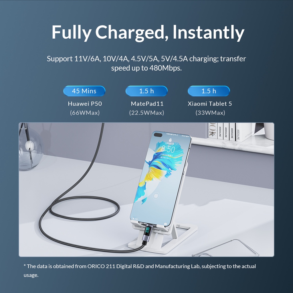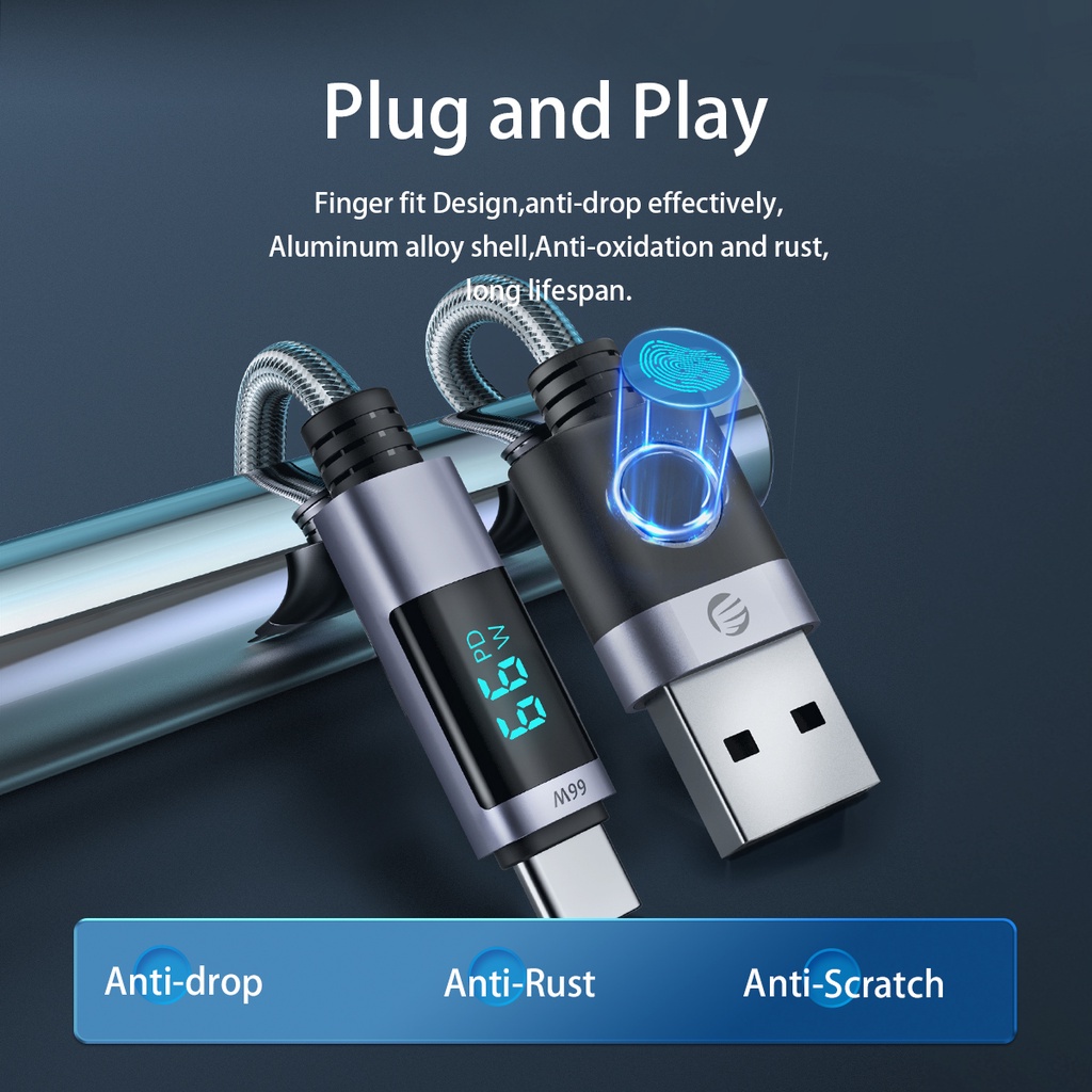USB C cables with LED displays vary in length from 50CM to 200CM. Each package comes with a soft and flexible faux-leather belt for each customer for easy storage to avoid those charging cables in a mess.