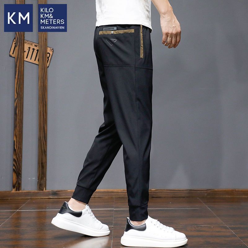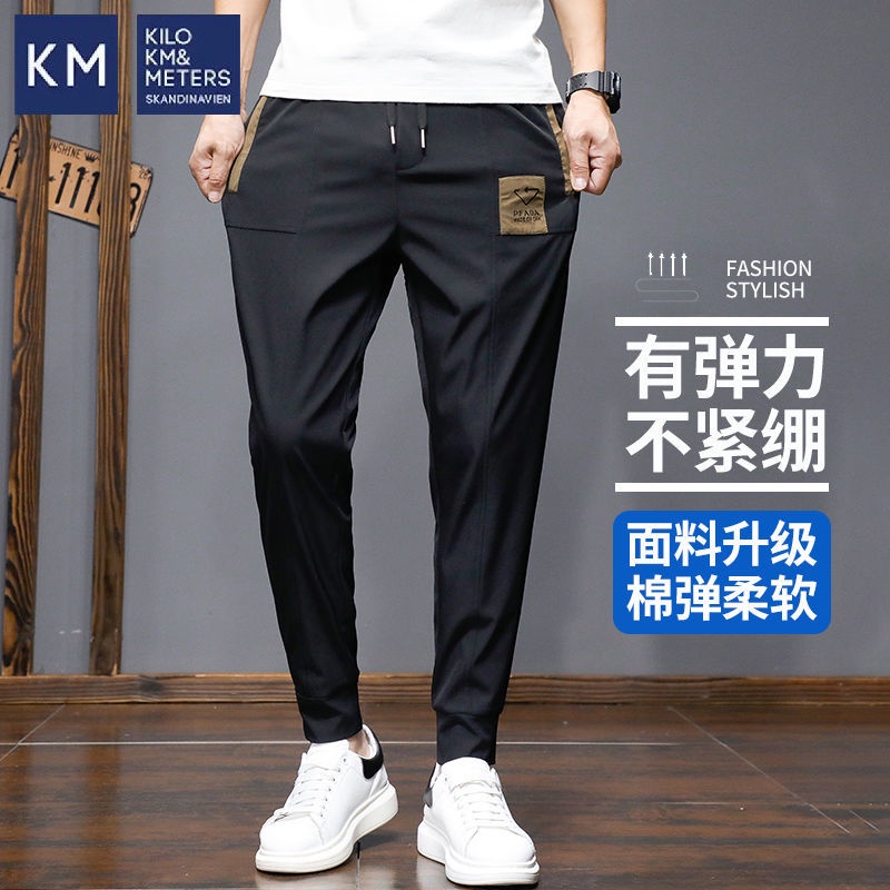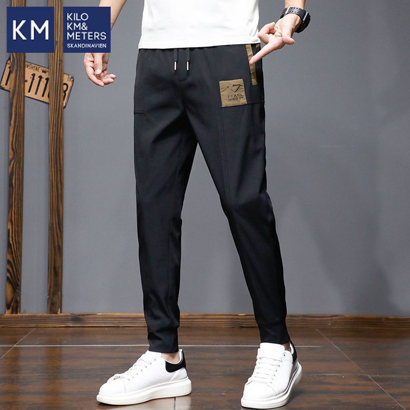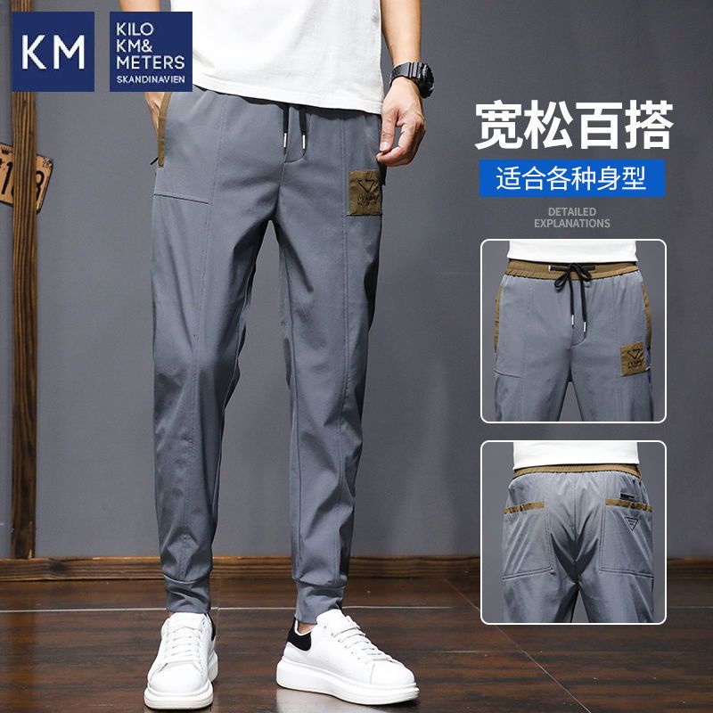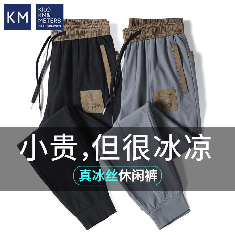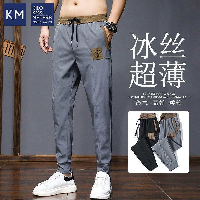 KM Ice Silk Pants Men's Fifi Men's Wear High Quality Thin Loose Elastic Fashion Crop SweatKM冰丝裤子男菲菲男装穿搭高品质薄款宽松弹力时尚九分运动裤