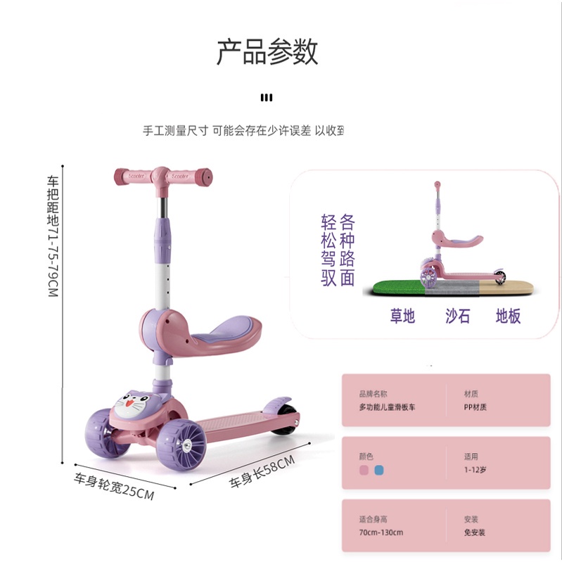 • SIT OR STAND DESIGN WITH FOOT REST: This scooter for toddlers is equipped w/ a unique 30kg capacity removable flip-out seat which kids can use while cruising along with the built-in foot pad. Can be detached when they feel more confident standing up