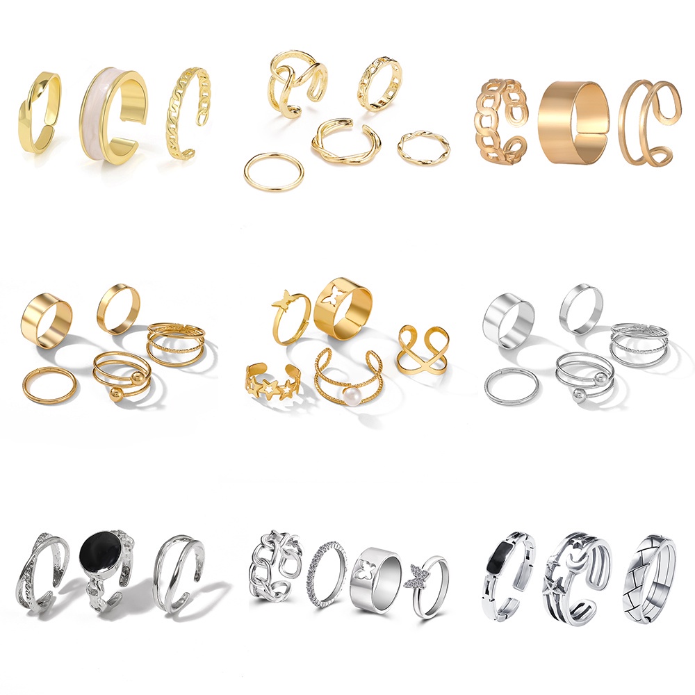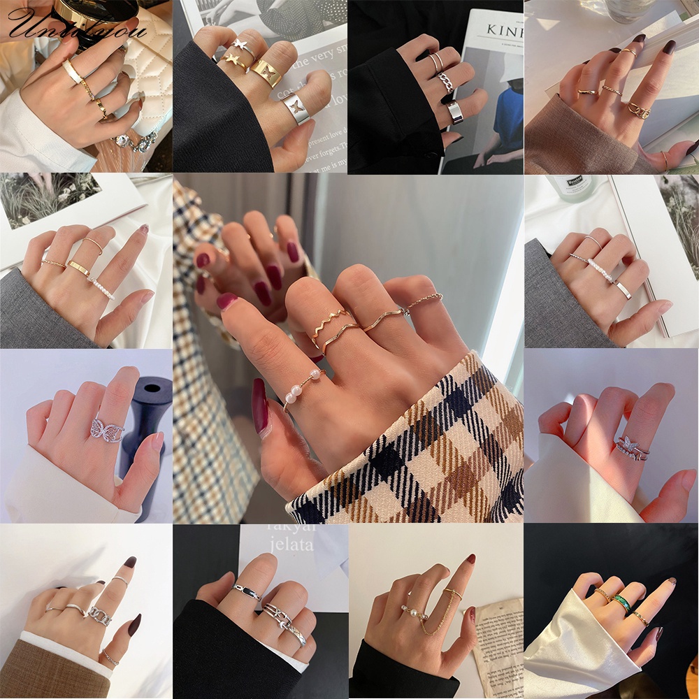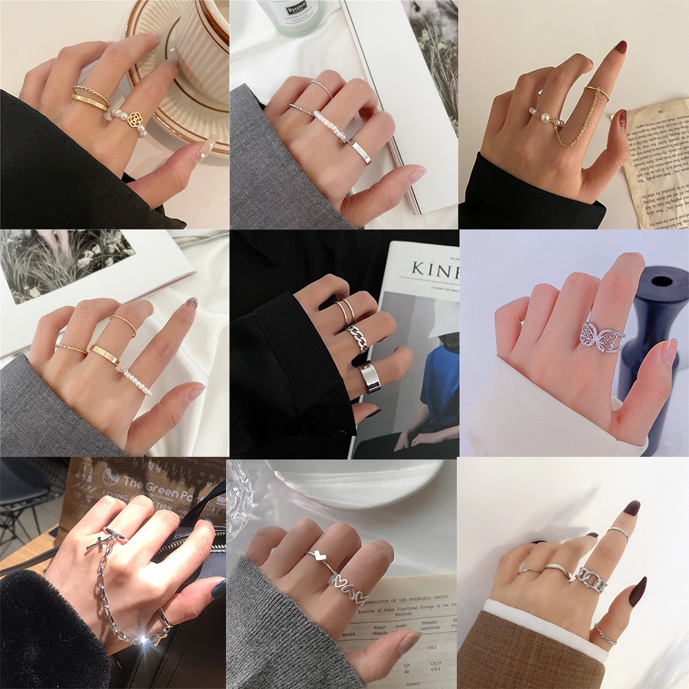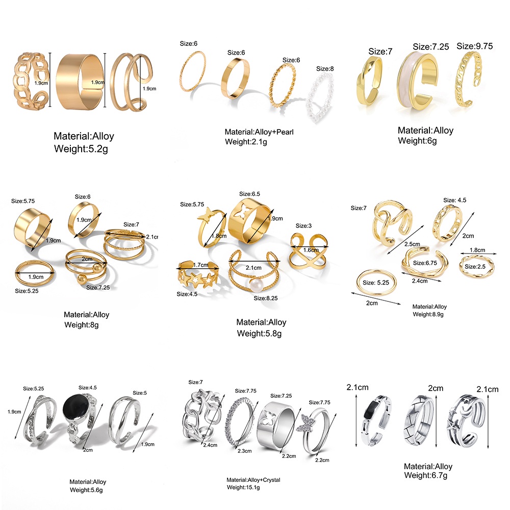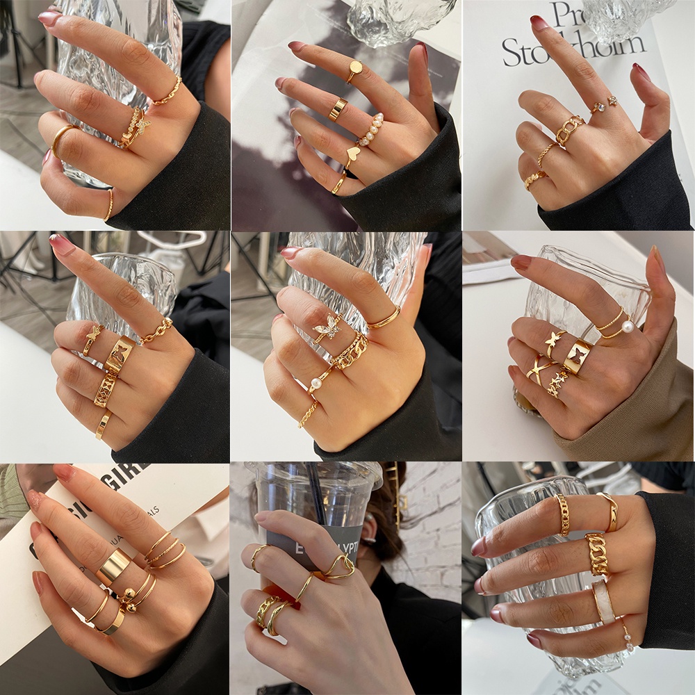 ? Name:8Pcs/Set Retro Pearl Diamond Ring Set Gold Silver Butterfly Couple Rings Fashion Finger Ring for Women Accessories Jewelry Gift