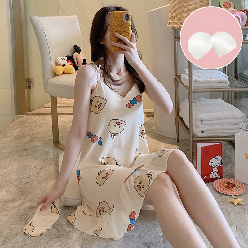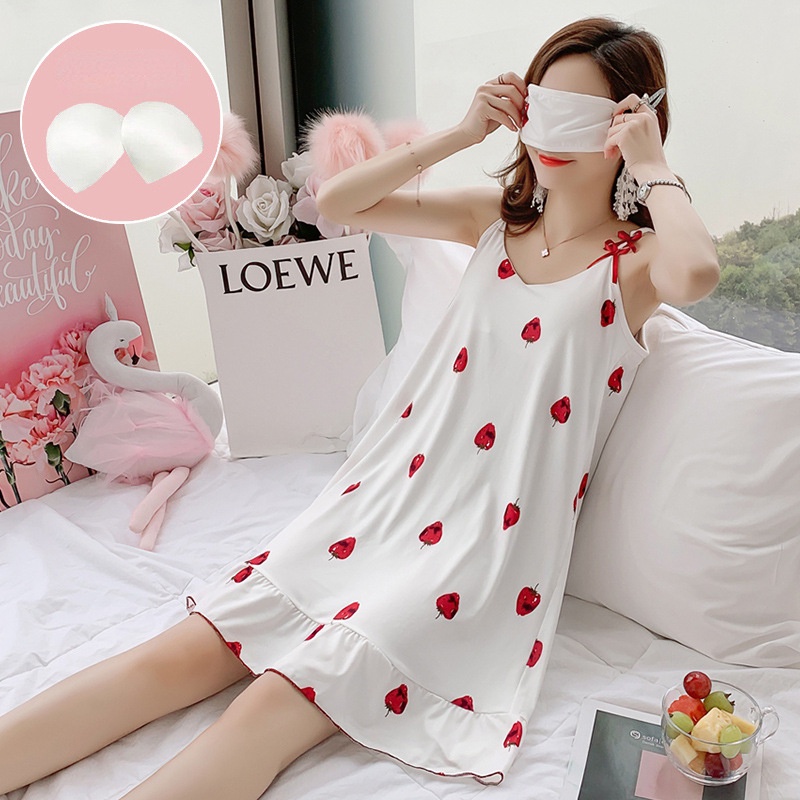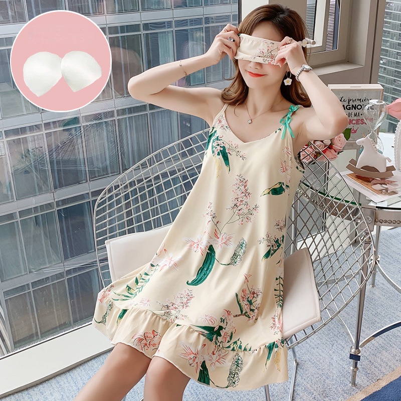 New Nightdress With Chest Pad Women Sexy Sleepwear Homewear Nightwear Baju Tidur Nightdress Women Pajamas/Pyjamas Fresh Loose Korean Nightwear Sleepwear