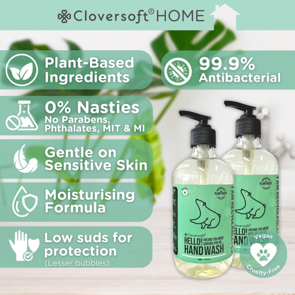 Cloversoft’s plant-based antibacterial hand wash provides an effective solution to kill off 99.99% of bacteria and germs. With our low suds formulation, it’s perfect for frequent handwashing to keep you protected while making sure your hands are sufficiently moisturized with each wash.