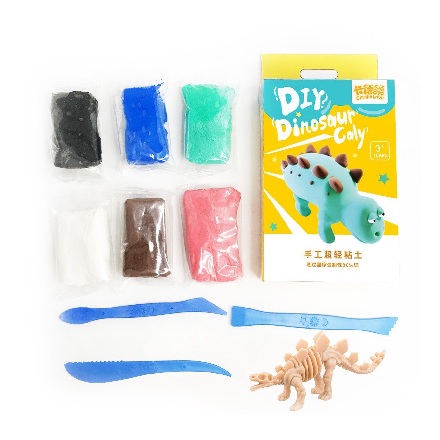 One set comes with a Dinosaur skeleton, 6 colour clay, 3 modeling tool