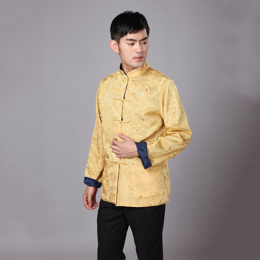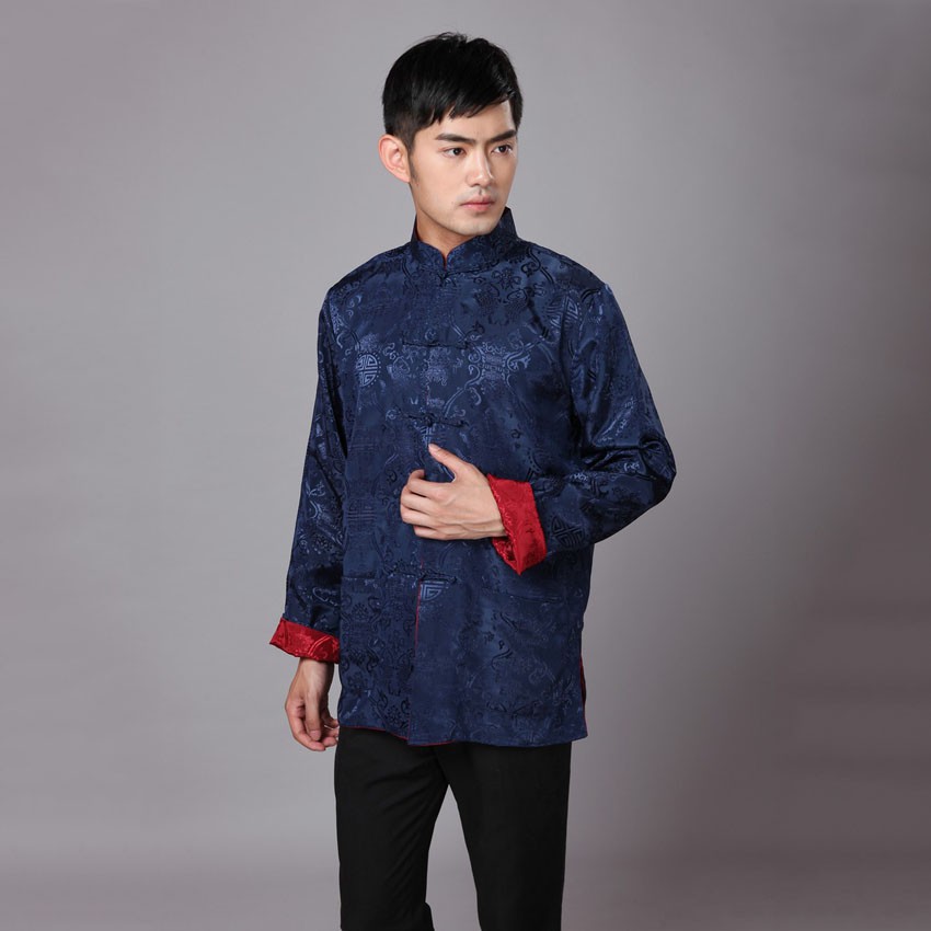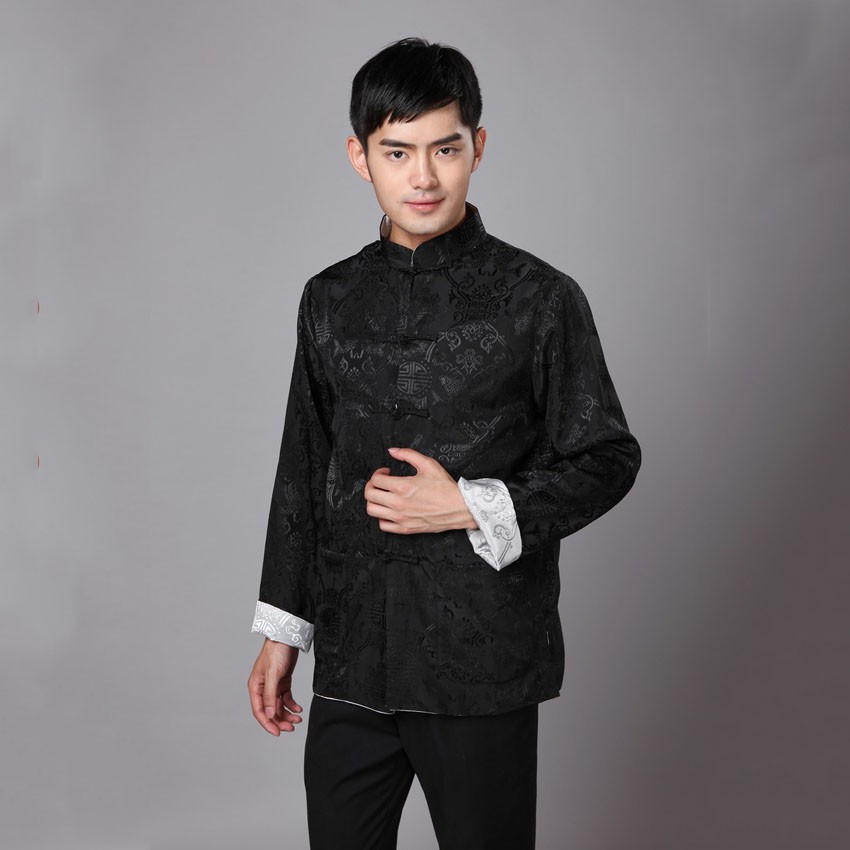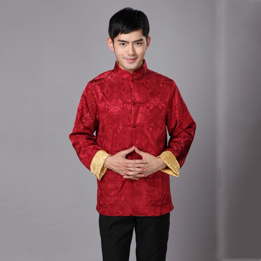 唐装 Cheongsam men Chinese Traditional Costumes Men Shirt Wedding Party Wear Chinese New Year Kungfu Clothing Full Sleeve Both Sides Shirt