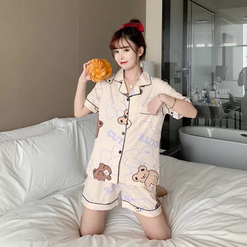 [Stock In SG] Women Cute Pajamas Pyjamas Set Home living Sleepwear Lingerie Set