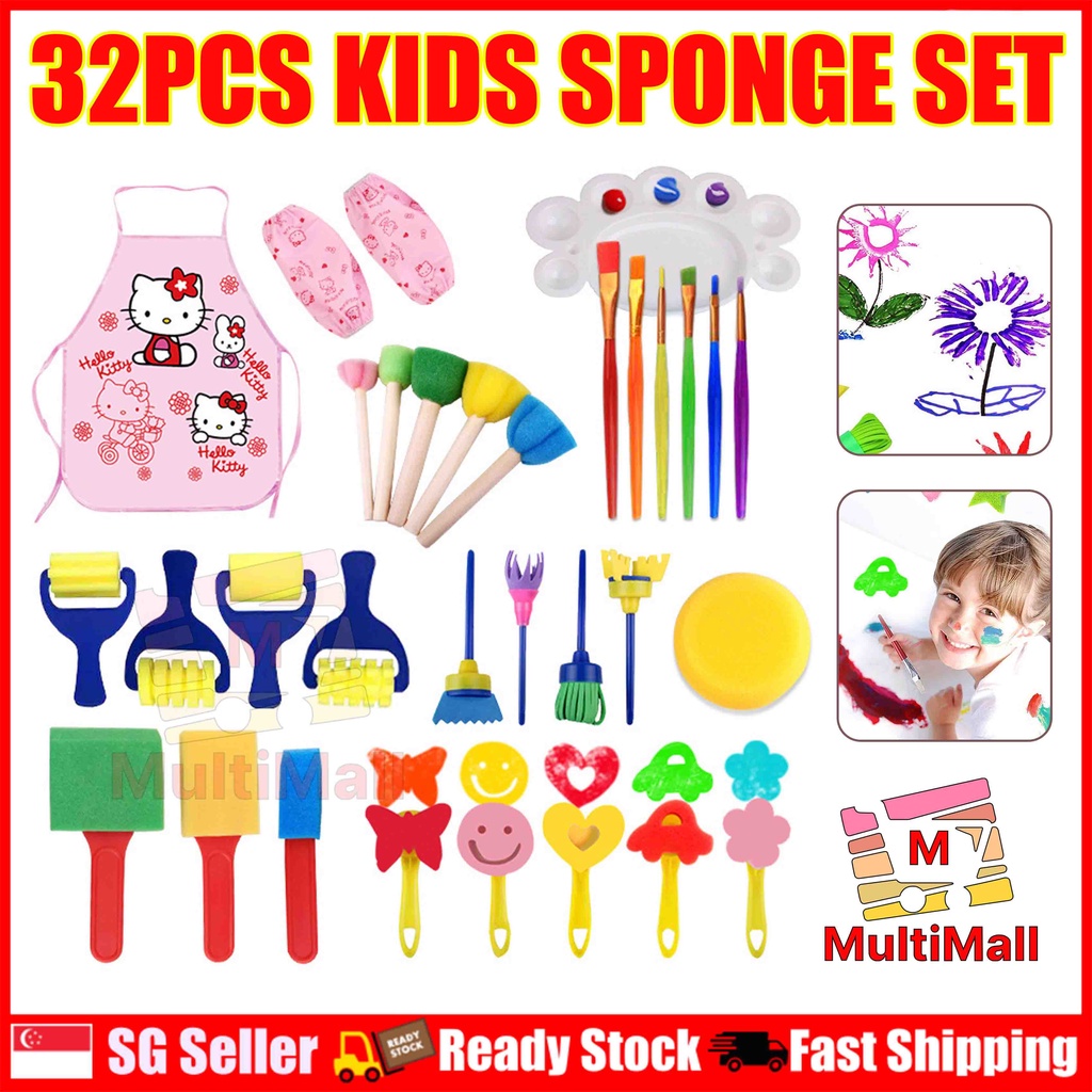 ✅ 32pcs Kid Sponge Painting Set (Pink, Blue or Yellow)