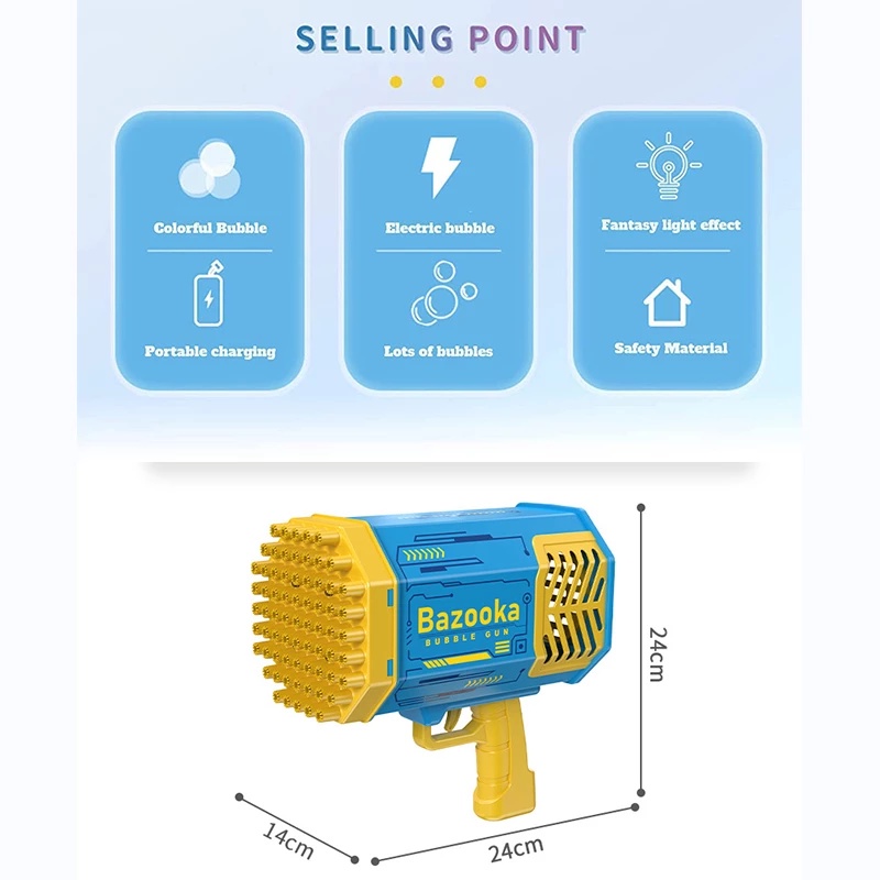The 69-hole bazooka is full of power, power and fun. 69-hole design, crazy bubbles, full of power. The ergonomic grip is rounded and doesn't hurt your hand. Bubbles, you can enjoy a colorful night