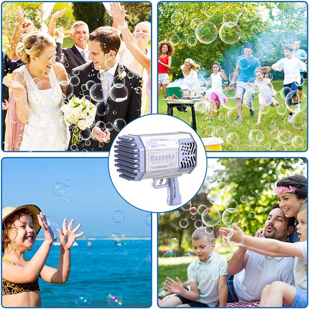 【You can use it】 Bazooka Bubble Gun is the most influential bubble machine toy in recent streaming media, and is deeply loved by Internet celebrities and their fans. As a must-have tool for dates, birthday parties, stages, weddings, barbecues, outdoors and more. It's the perfect prop for photos. You can take perfect photos and videos with it