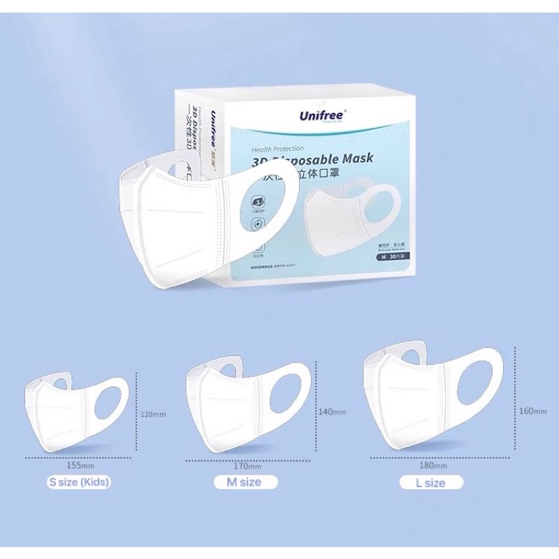 Unifree Adult Kids 3D BFE 99% Medical Face Mask 30pcs